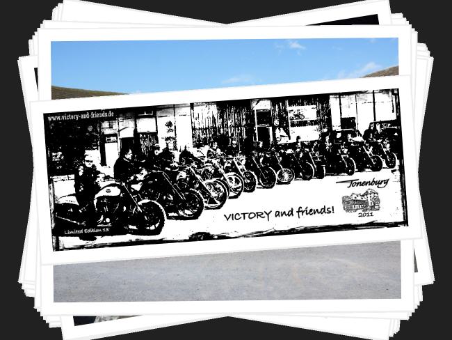 Weil wir gern auch Freunde und Familie dabei haben wollten und auch andere Biker willkommen waren, wurde das Motto "VICTORY and friends" geboren. Und weil es so schön war, entschlossen wir uns zu einer Wiederholung im darauf folgenden Jahr. Oben seht Ihr einige Impressionen dieses Treffens.