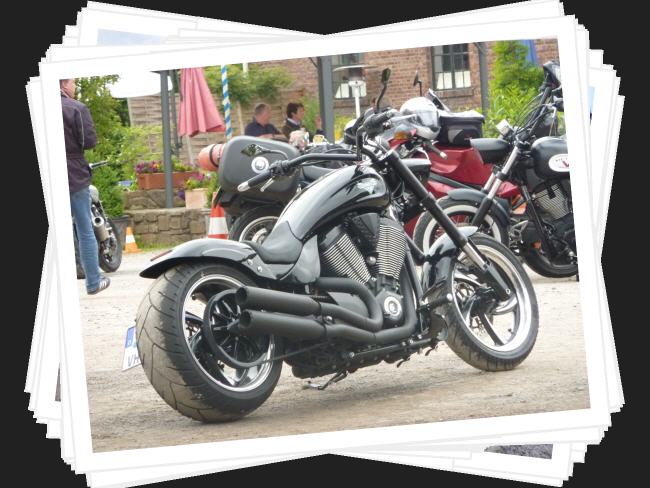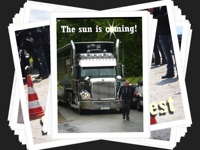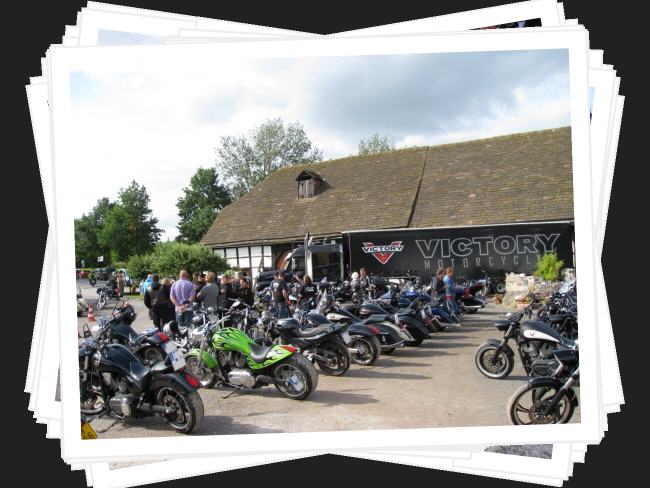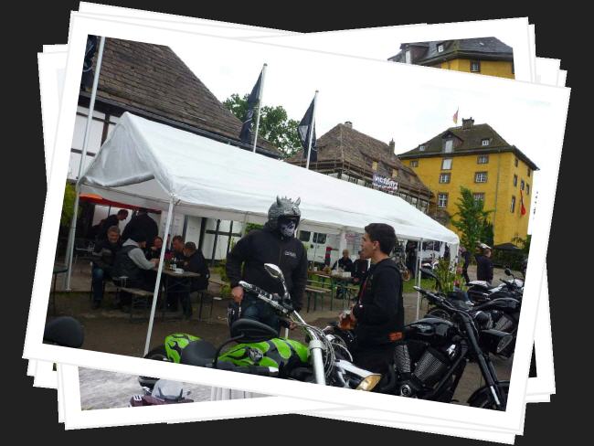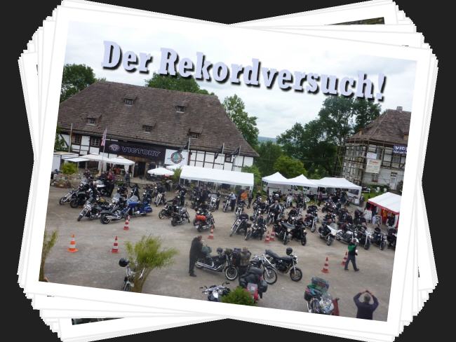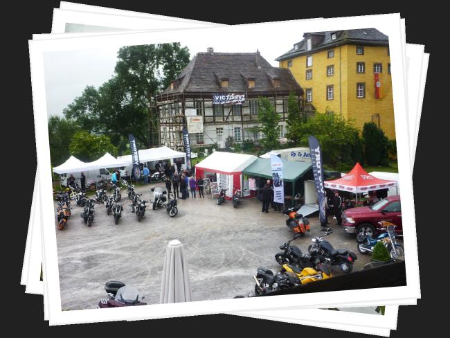 Es war wieder einmal eine absolut gelungene Veranstaltung, an der trotz strömendem Dauerregen bis Samstag Mittag insgesamt 80 VICTORY-Biker aus Deutschland, England, Luxemburg und der Schweiz, sowie viele "friends" mit ihren Bikes teilnahmen. Und das hat sich auch gelohnt, denn nach Ankunft unseres ">Sonnenshuttles" aus Mallorca, für den zunächst der komplette Burg-Hof geräumt werden mußte, ging ab Samstag Mittag die Sonne auf, sodass die Veranstaltung dann am Sonntag mit einem >GUINNESS Weltrekordversuch bei herrlich trockenem Wetter und angenehmen Temparaturen zu Ende ging.